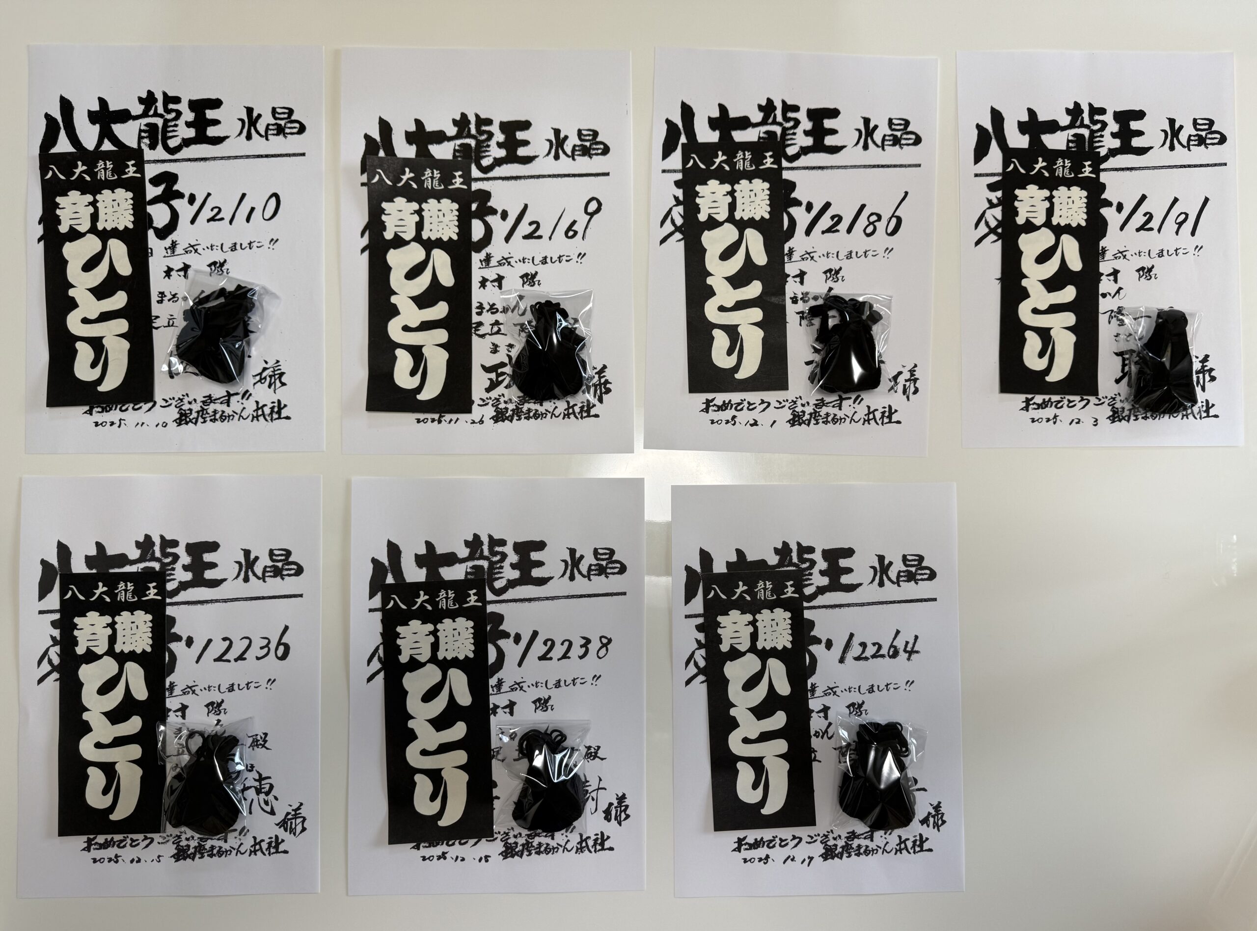 この度、ひとりさんの八大龍王水晶が7個入荷しまして、 現在お待ち頂いている愛弟子様は1名様となります
