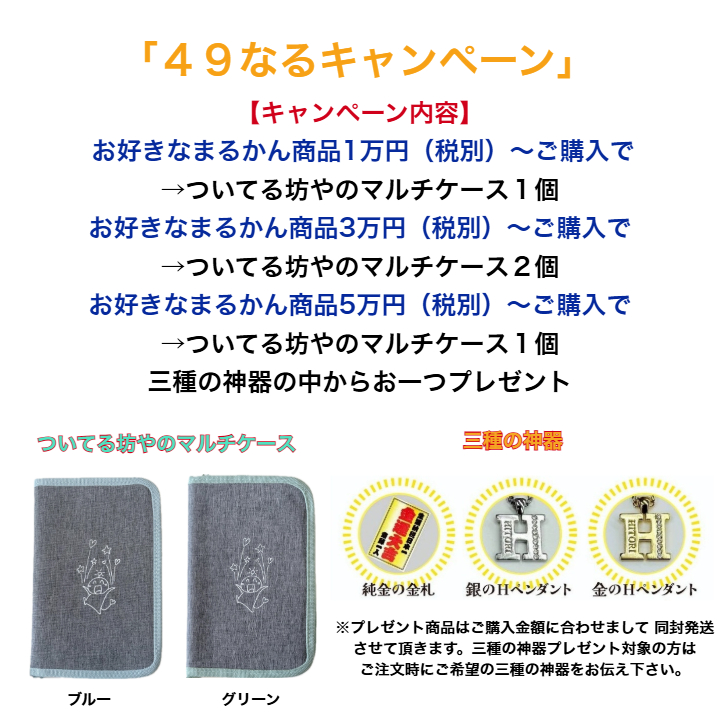 ※ついてる坊やのマルチケースは数に限りがありますので1回のご注文で2個までのプレゼントとさせて頂きます。